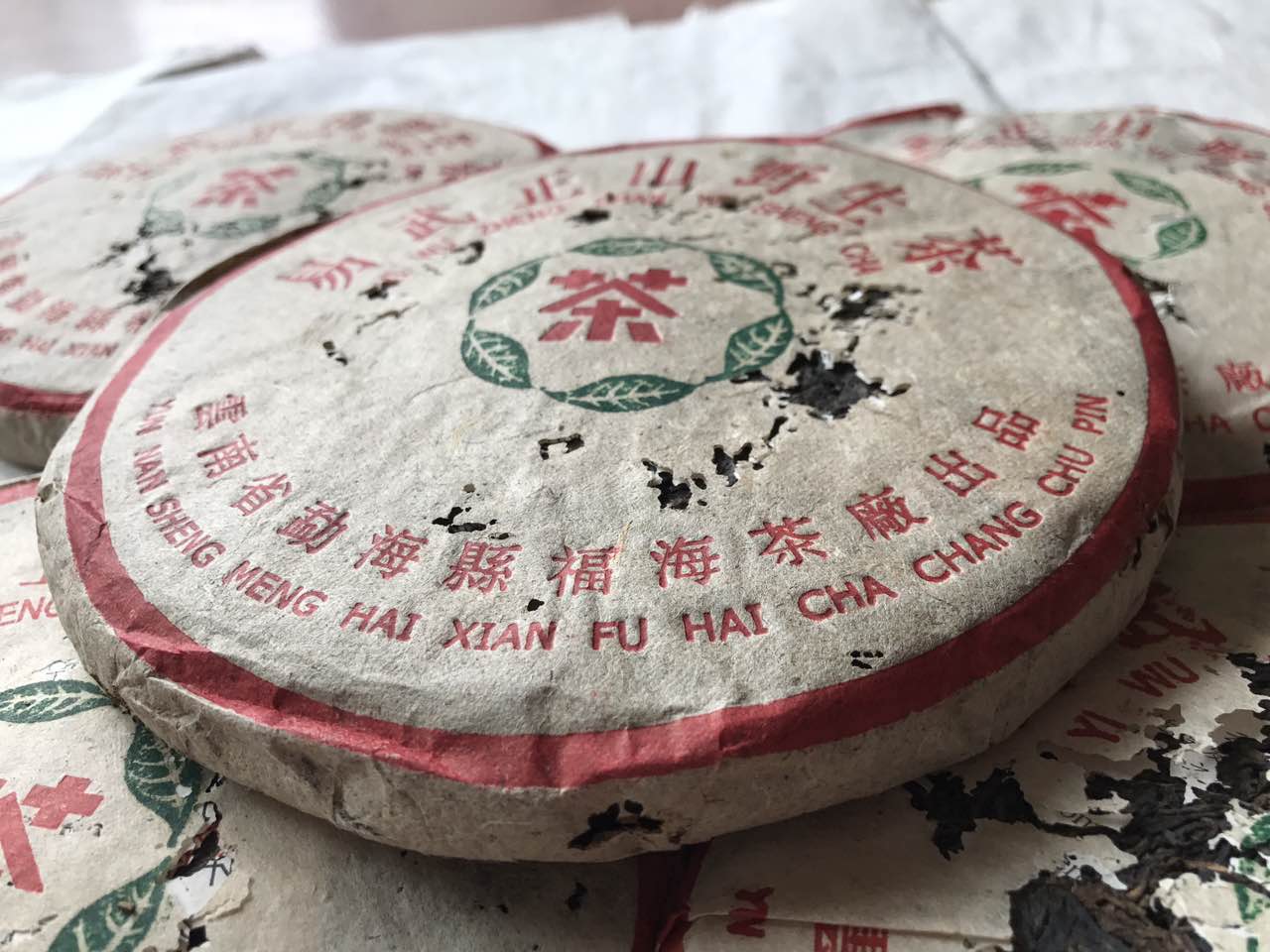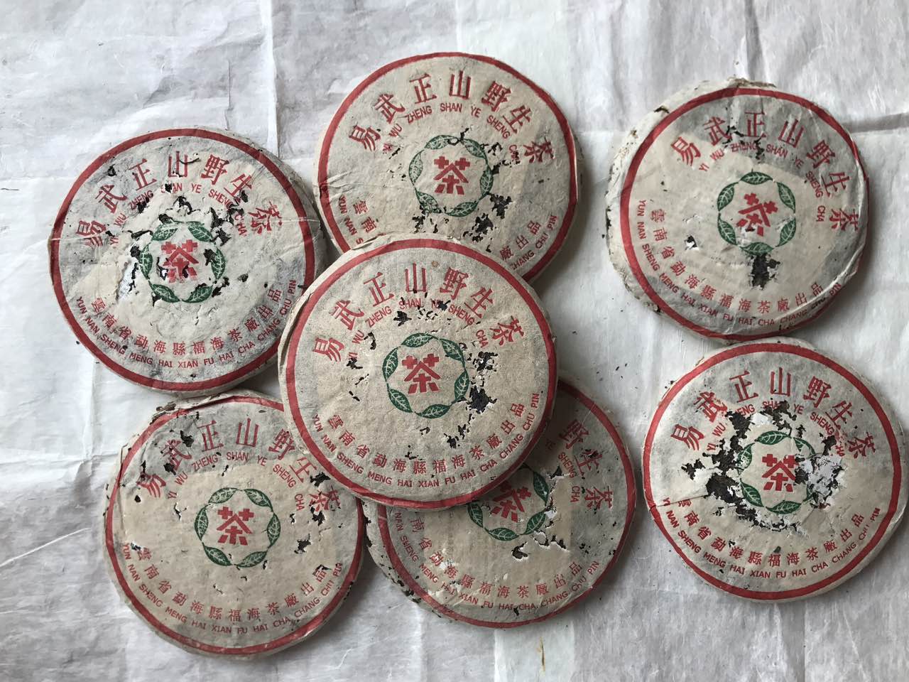 一九九九年 福海茶厂 357克七子饼 易武正山野生茶 又名(九九绿星星)特厚草纸