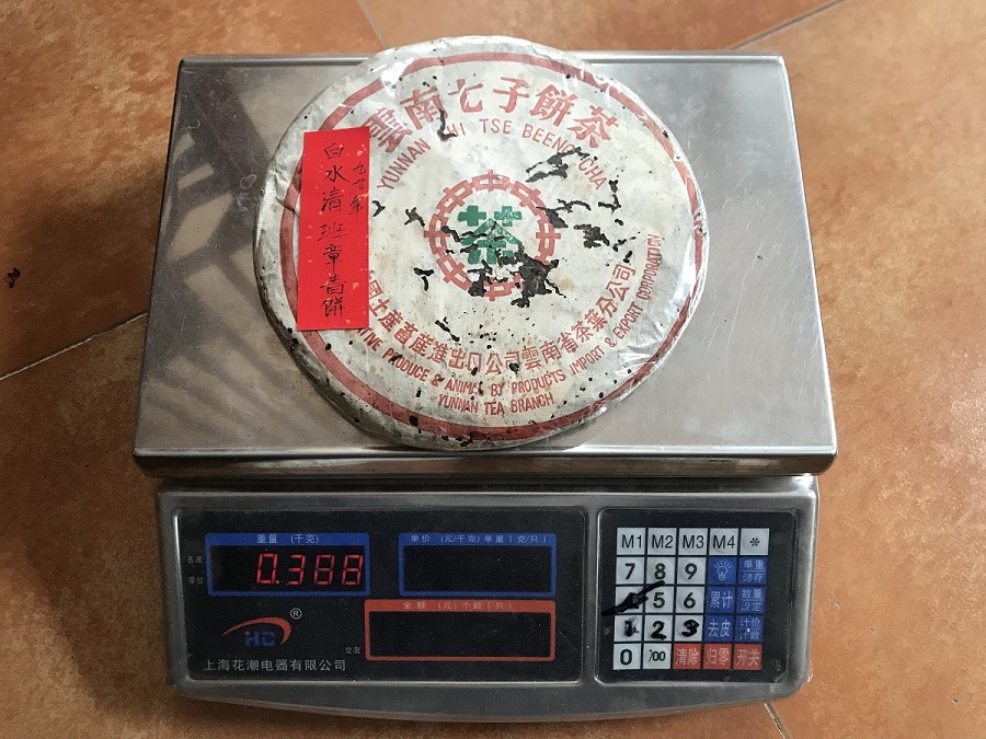 老茶 > 2000年及以前>99年白水清 定制 无飞绿印 班章青饼 380克